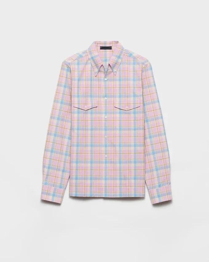 A Delicate Checked Motif Animates This Cotton Button-Down Shirt with a Classic Cut. Refined Details Enrich the Garment with Casual Style.