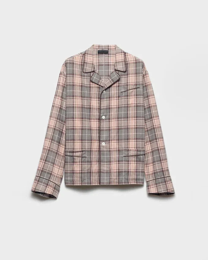 Reinterpreted as an Outdoor Garment, the Pajama Inspires the Design of This Cotton Shirt. A Vintage-Style Checked Motif Enriches the Relaxed Fit Style Defined with Contrasting Piping and Refined Details.