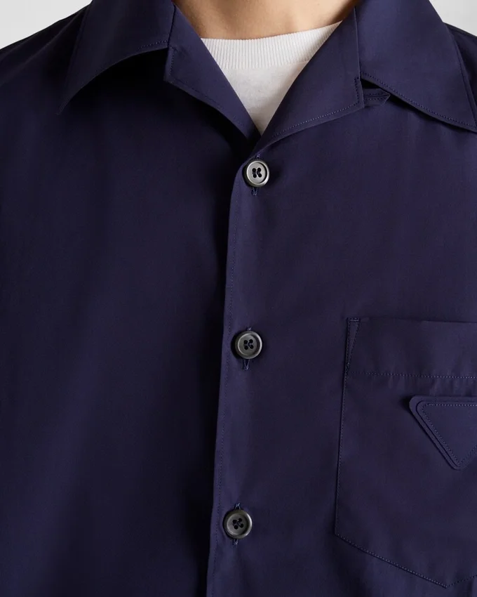 The Distinctive Bowling Shirt is Reinterpreted with Clean Lines That Create a Minimalist Silhouette Completed by Mother-Of-Pearl Buttons and Decorated with the Emblematic Triangle Logo.