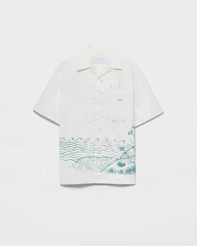 The Dynamic Energy of Nature is Captured in a Print with Light, Delicate Lines That Embellishes This Bowling Shirt. The Distinctive Silhouette of Prada Collections is Reinterpreted for the Spring/Summer 2026 Season.