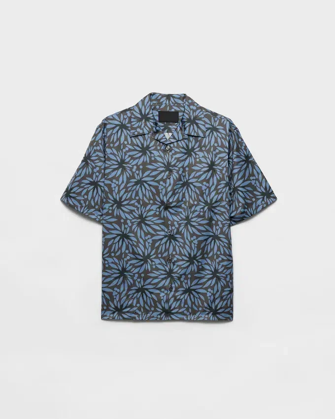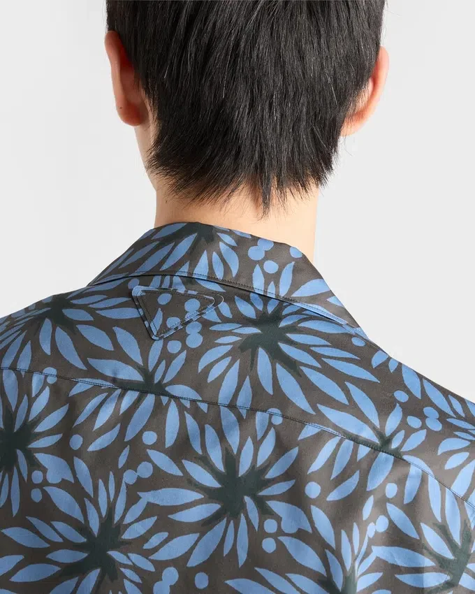 A Modernist Floral Print Animates the Silhouette of This Short-Sleeved Bowling Shirt with a Precise Cut. The Triangle Logo Adds a Distinctive Note to the Garment.