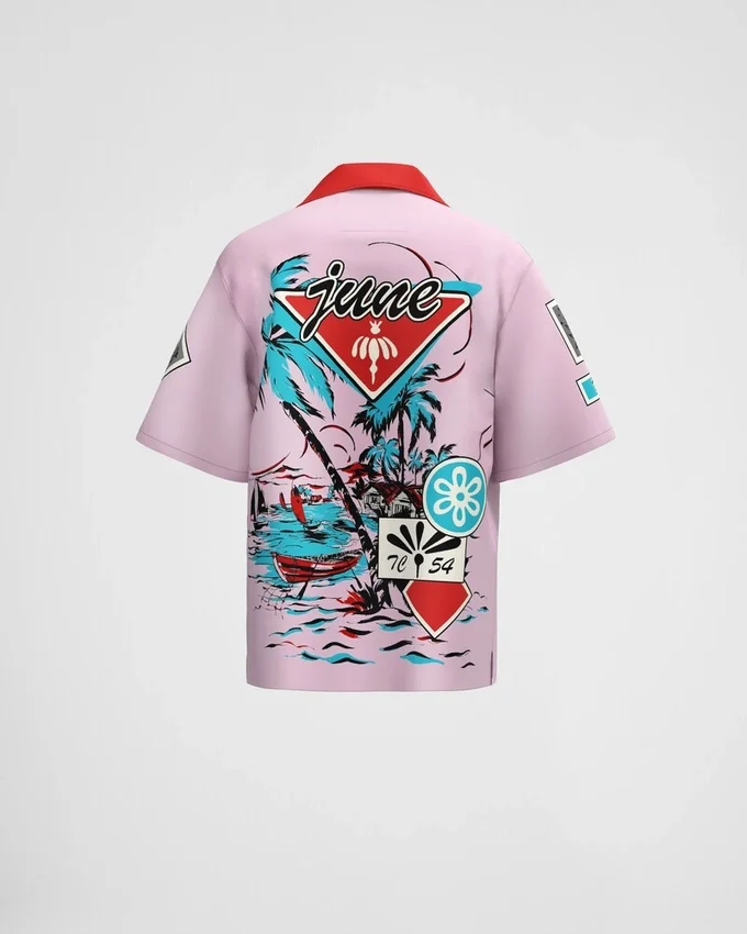 For the Timecapsule Drop #54, Prada Presents a Limited Edition Shirt with an Exclusive New Print. A Tropical Beach in Vibrant Colors Decorates the Garment with Bowling Collar. Meanwhile, the Distinctive June Print, Together with the Iconic Triangle, Completes the Back of the Design. Available Exclusively Online for Just 24 Hours, the Drop Includes the Timecapsule Shirt and Its Nft Digital Version That Lets You Become Part of Prada’s Exclusive Crypted Nft Community.