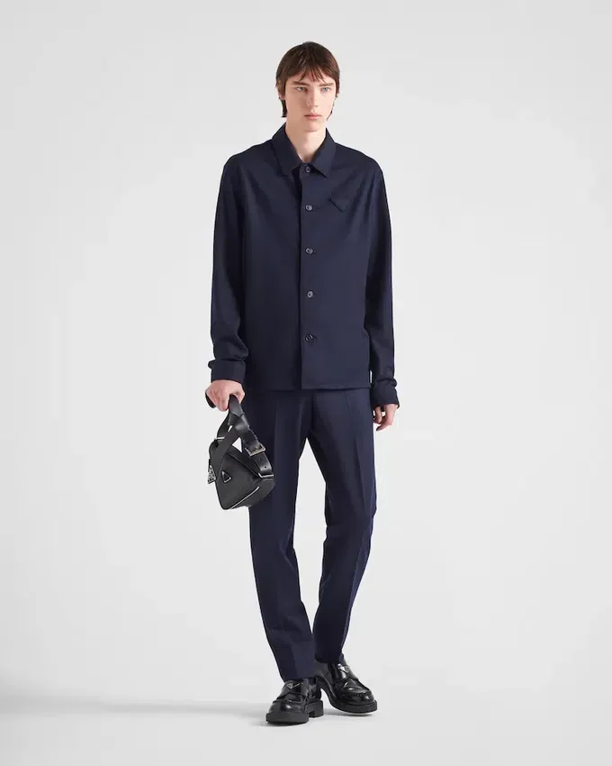 Sleek and Refined, This Shirt is Characterized by Its Original Horn Button Closure That Underlines the Hybrid Soul of the Garment That is Decorated with the Triangle Logo Reinterpreted as a Fabric Patch.