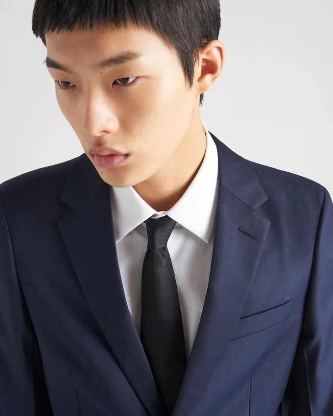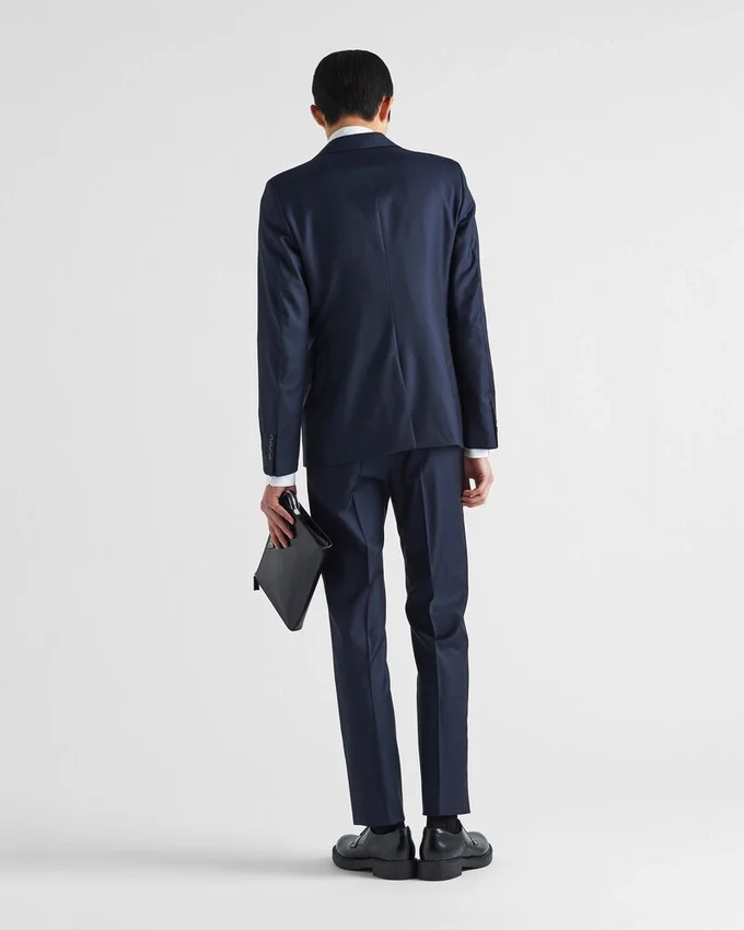 Sophisticated Tailoring Makes This Slim-Fit Single-Breasted Suit Distinctive. The Jacket with a Two-Button Closure Has Classic Lapels and a Center Vent, While the Pants Feature Front Slant Pockets and Back Welt Pockets. Combining Tailoring Tradition and Modern Aesthetics, Prada Creates a Timeless Design, Featuring Luxury Materials and a High Degree of Technical Know-How.