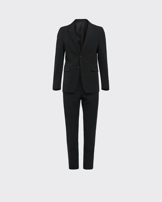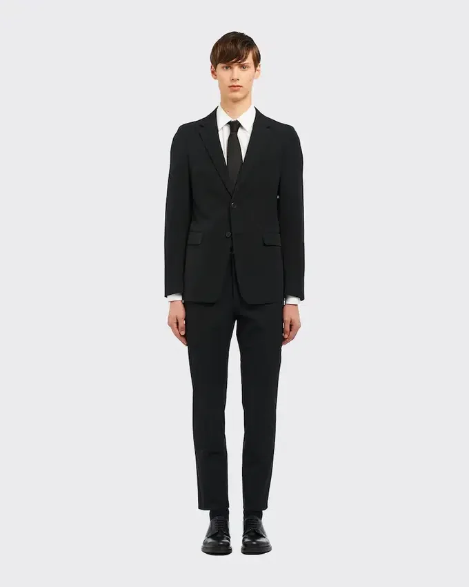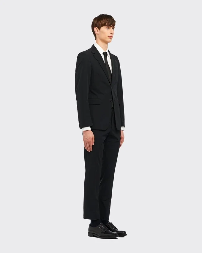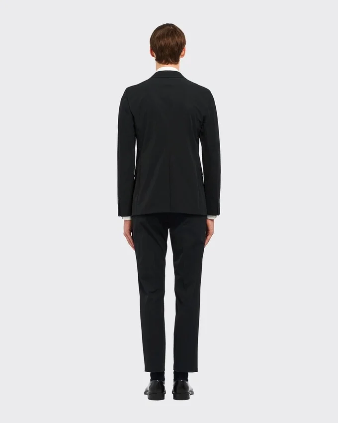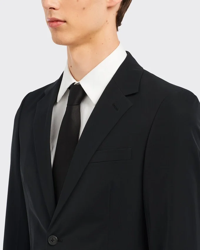 This Single-Breasted Suit Made of Light, Stretch Technical Fabric Has a Sleek, Elegant Silhouette. The Lined Two-Button Jacket Has Classic Lapels and a Constructed Shoulder.