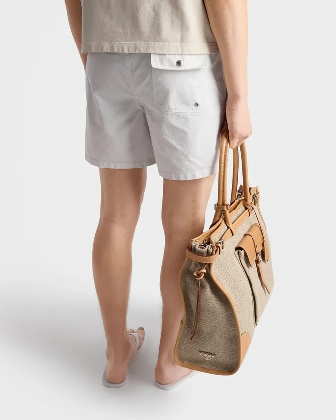 The Refined Style and Relaxed Attitude of the Summer Collection Defines These Twill Swim Trunks. The Simple, Comfortable Design with Elasticized Waist is Characterized by a Vintage Finish and is Completed with the Sartorial Logo Label.