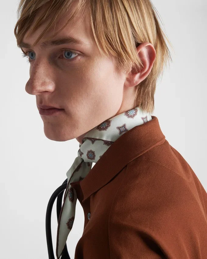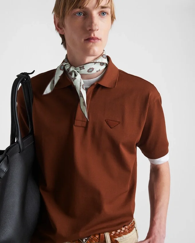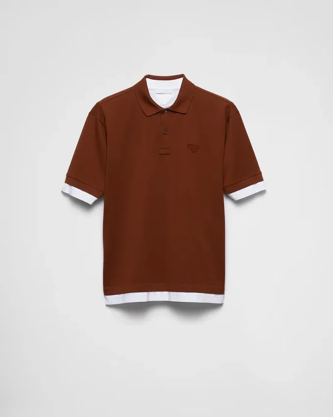 The Cotton Polo Shirt is Reinterpreted with Layering That Gives a Classic Silhouette Contemporary and Sporty Appeal. Oversized Lines Define in Short-Sleeved Style Enriched with Contrasting Jersey Trim and Decorated with the Emblematic Fabric Triangle Logo.