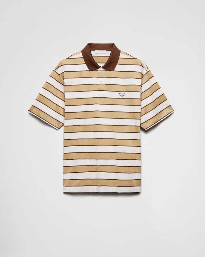 A Strip Motif in a Contrasting Color Animates This Cotton Polo Shirt Characterized by a Boxy Fit and Decorated with the Lettering Logo.