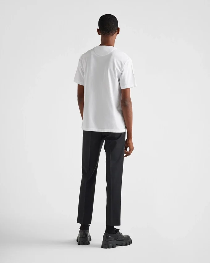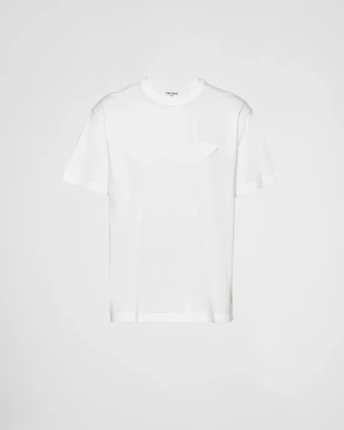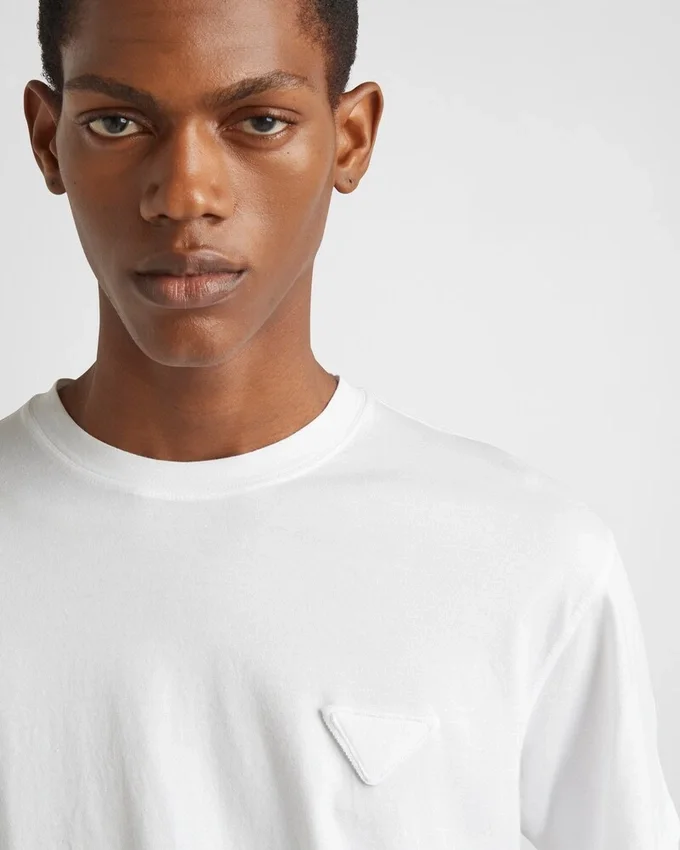 This Short-Sleeved Cotton Tee Has an Oversized Fit and Ribbed Knit Crew Neck. The Style is Decorated with the Iconic Triangle Logo on the Front.