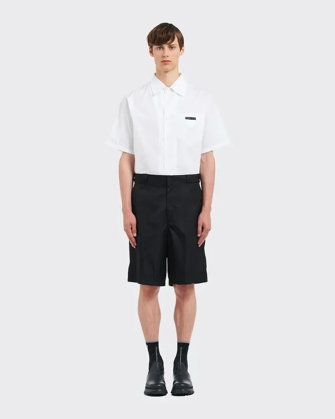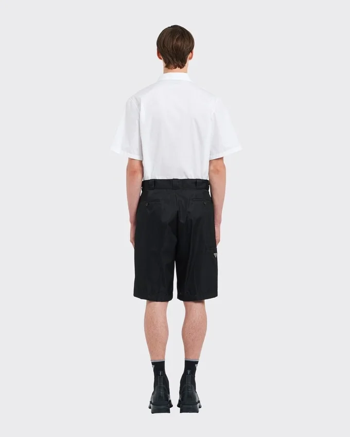 Wide-Leg Nylon Gabardine Bermudas with Ironed Crease. The Style Has a Triangle Logo Applied on the Small Pocket. This Product Does Not Contribute to the Sea Beyond Educational Program.