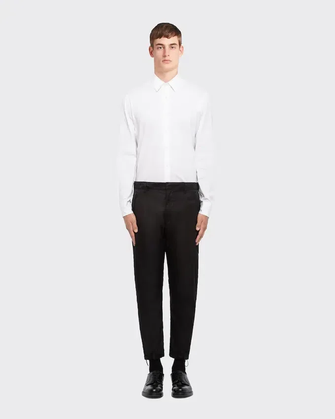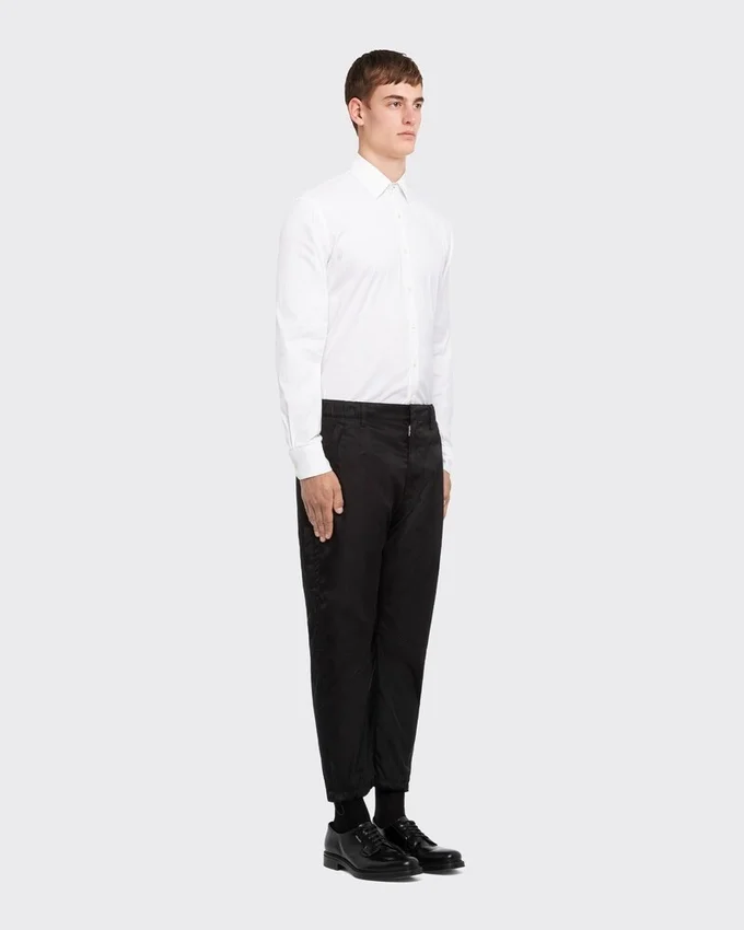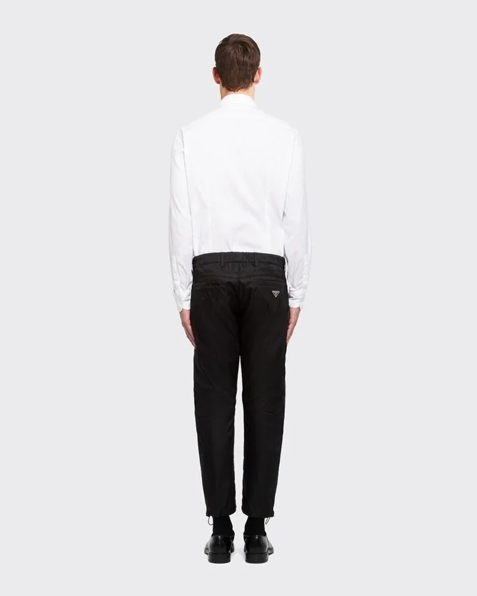 A Contemporary Mood Distinguishes These Trousers Made of Re-Nylon, the Special Regenerated Nylon Yarn Obtained from Plastic Trash Recovered from the Ocean. The Skinny Fit Garment Has an Elasticized Waistband with Zipper Fly and Hidden Hook, Zipper Pockets on the Front and Welt Pockets on the Back. The Elasticized Drawstring Hem Characterizes the Silhouette. For Sustainable Care to Preserve the Product’s Characteristics and Reduce Microfiber Shedding, We Recommend Not Washing the Item Too Often. Let the Product Air out After Every Use and Have It Dry Cleaned at a Specialized Ecological Dry Cleaners.