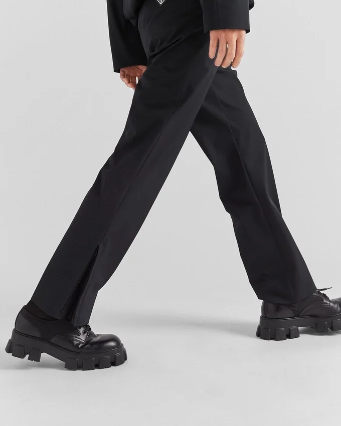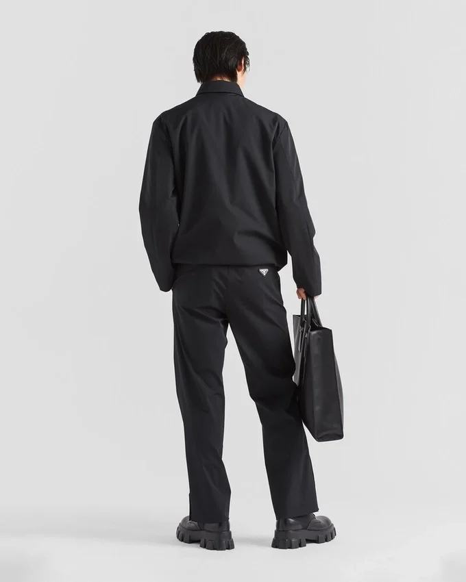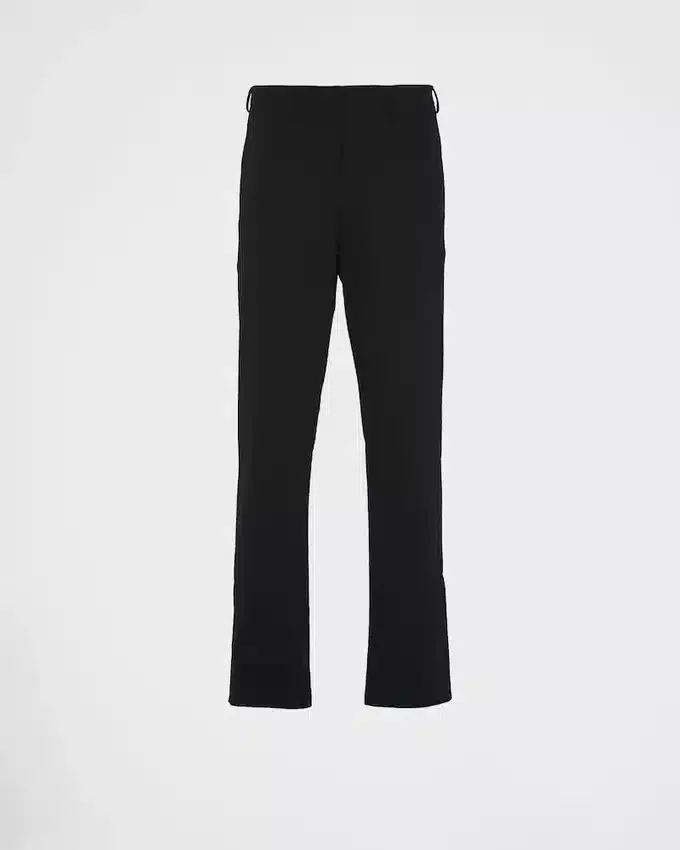 Technologically Innovative Fabrics Adopt Sartorial Volumes and Treatments in a Collection That Celebrates Contradiction, an Expression of Quintessential Prada. These Pants Made of Stretch Technical Fabric and Embellished with Sophisticated Details Embody the Artisanal and Modernist Soul of the Brand.