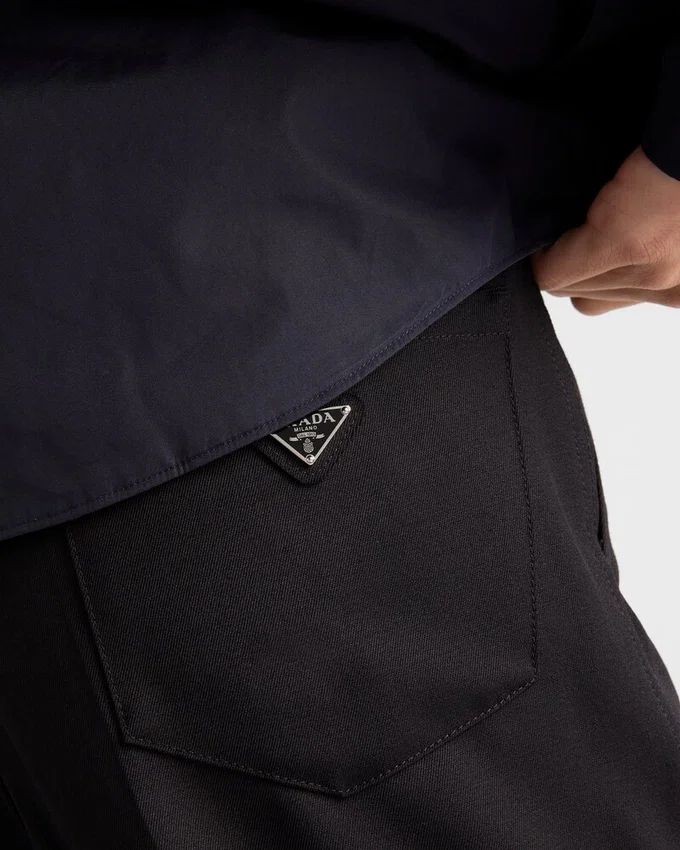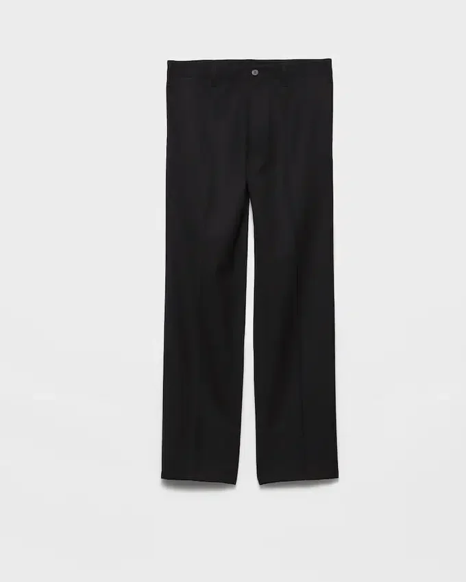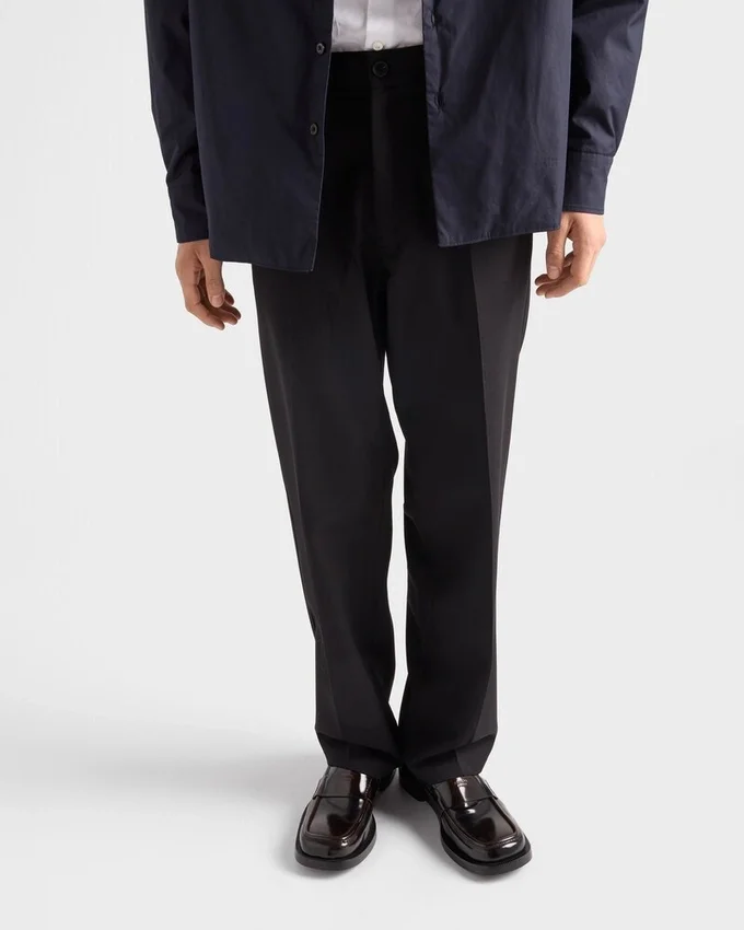 These Pants with Sleek Details, a Classic Cut and Casual Allure Are a Key Piece in a Wardrobe with Contemporary Style. The Garment is Made of Wool with a Slightly Creased Effect, a Distinctive Detail of Prada Collections That Adds Dimension and Uniqueness to the Style.