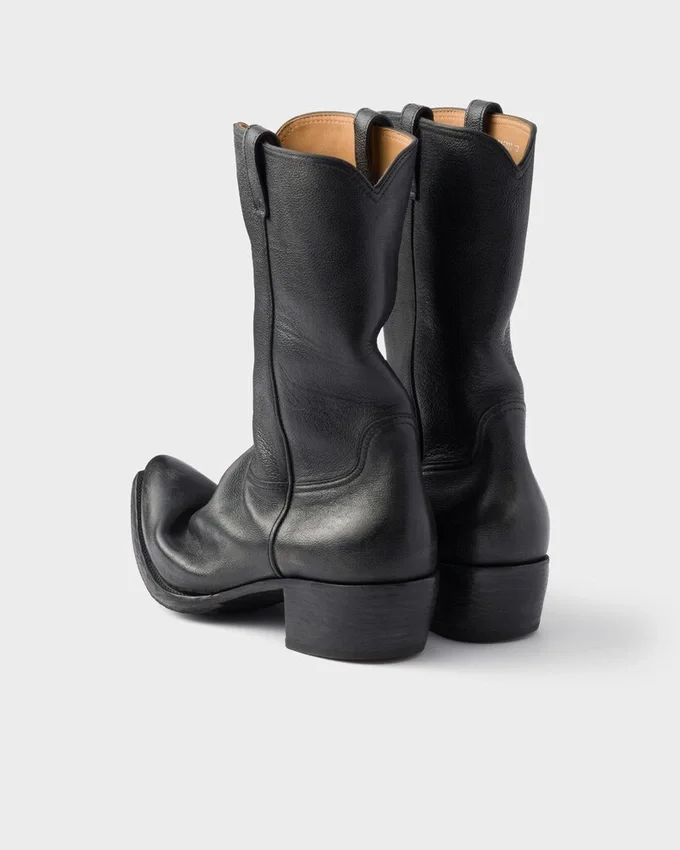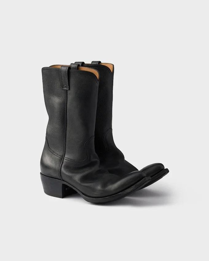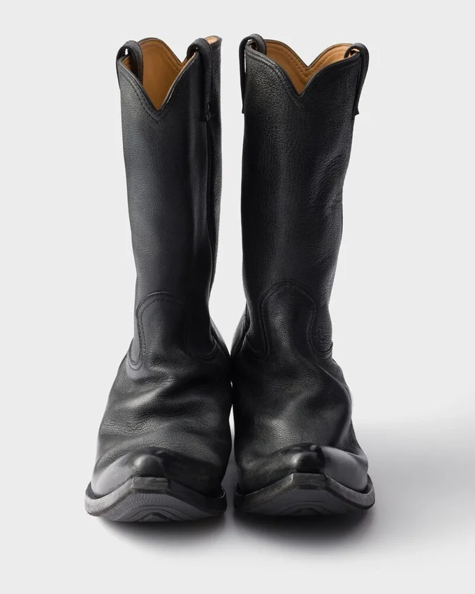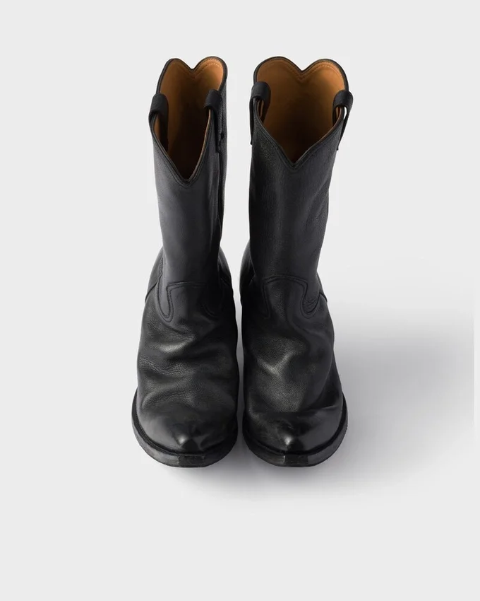 An Archive Silhouette Inspires the Design of These Texan Boots Made of Soft Leather with Innovative Artisan Techniques. Unusual Combinations and Strong Contrasts Define This Bold Footwear, Characterized by an Exaggerated Pointy Toe and a Vintage Effect That Adds Depth and Uniqueness to the Boot, an Expression of Authentic, Instinctive Style.