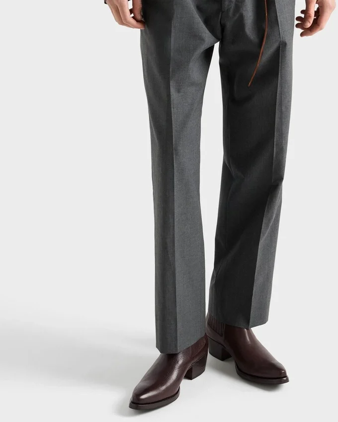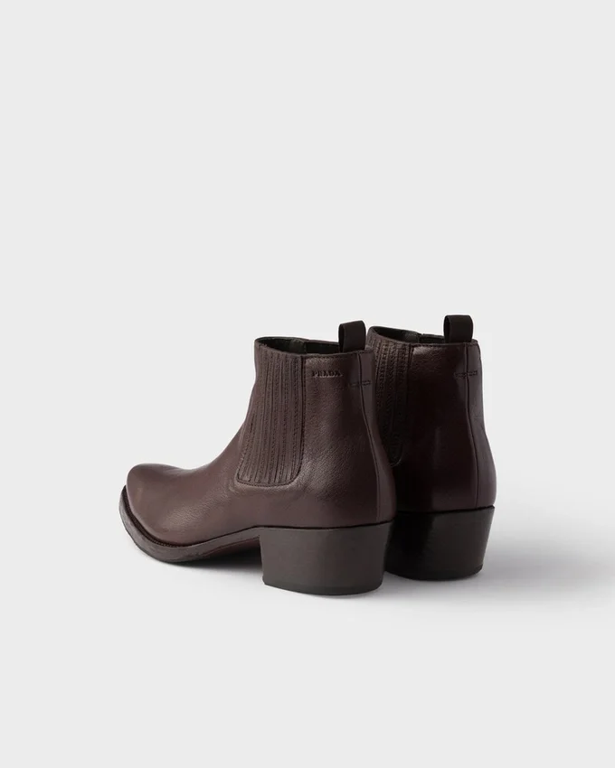 Leather Chelsea Boots, an Icon of Urban Style, Reveal a Distinct, Minimalist Line. The Gold Logo on the Sole Underlines the Balance Between Classic Rigor and Prada Modernity.