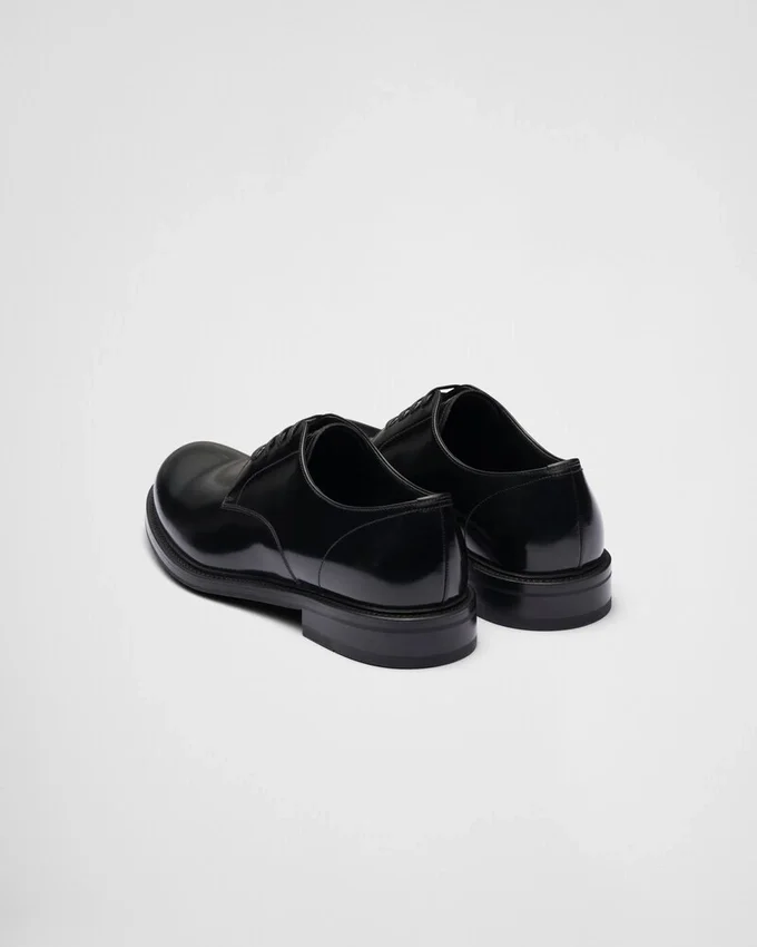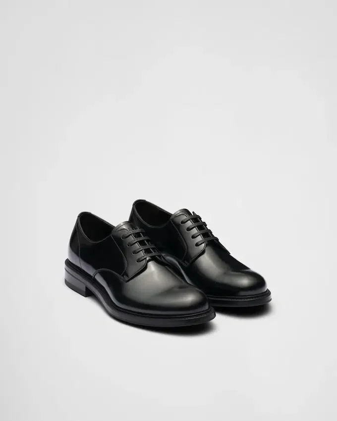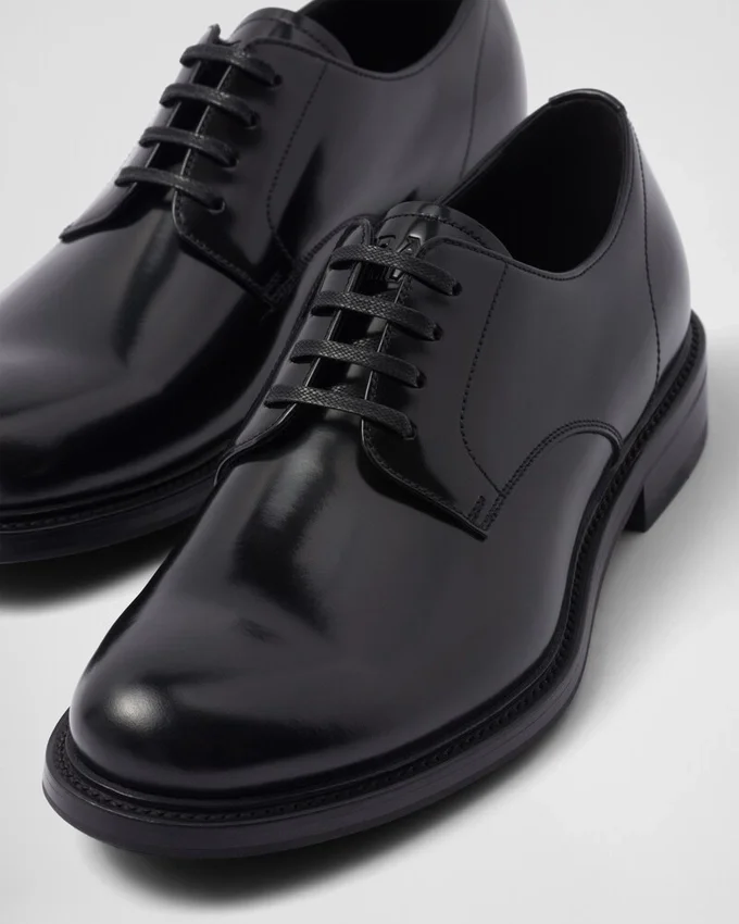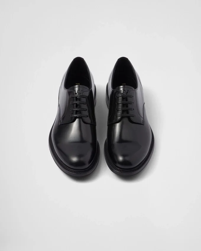 A Clean, Sleek Aesthetic Characterizes the Contemporary Style of These Brushed Leather Lace-Up Shoes with a Voluminous Silhouette. The Important Construction and Metal Lettering Logo Underline the Personality of the Shoe.