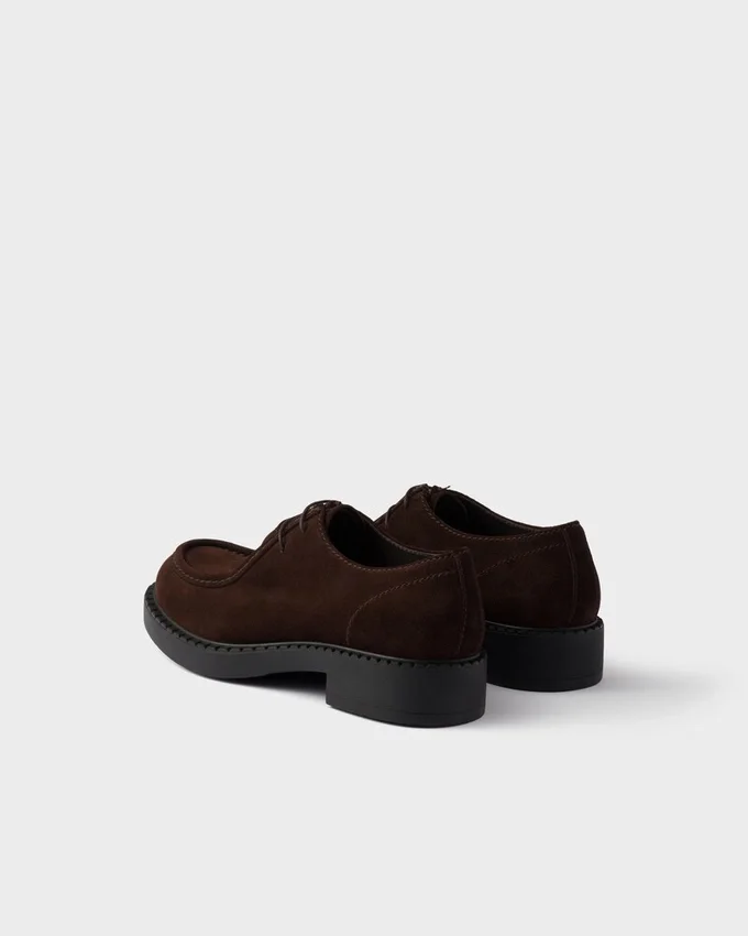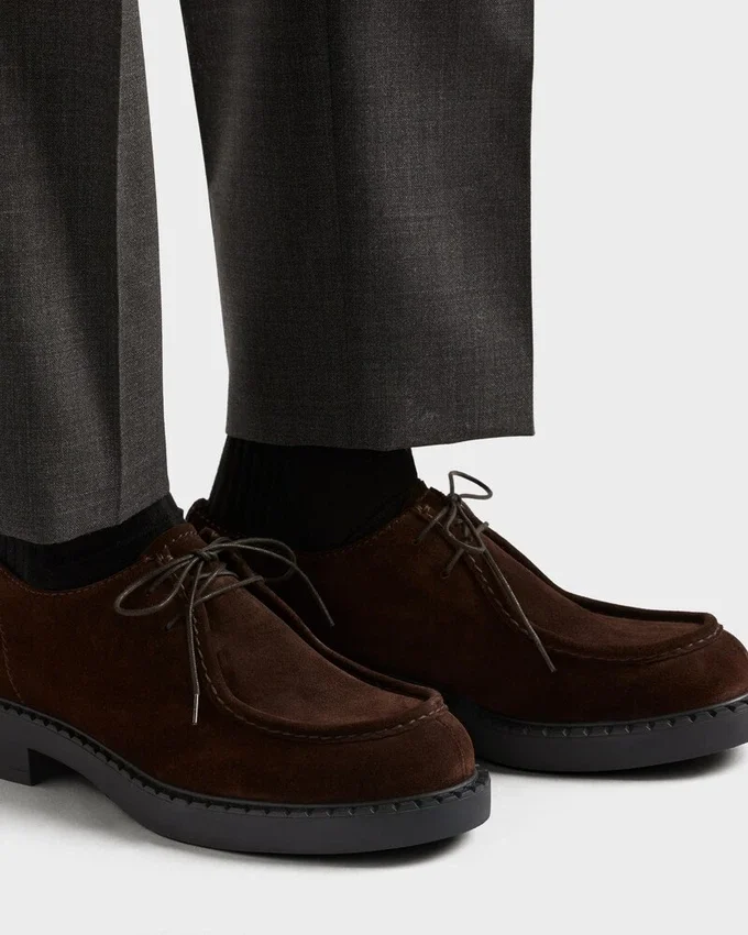 These Suede Lace-Up Shoes Embody Sophisticated, Contemporary Style. The Shoe Combines Classic Details with Modernist Volumes Emphasized by the Hand-Stitched Raised Edge That Reveals the Artisan Essence of the Design. The Distinctive Soles in Lightweight Rubber Complete the Look with a Versatile Touch.