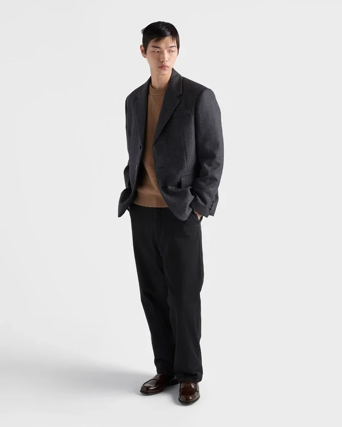 Characterized by an Elongated Line, These Brushed Leather Loafers Embody an Anachronistic Tradition with Handcrafted Elements That Encounter Modernist Allure. The Enameled Metal Triangle Logo, Which First Appeared on Trunks Designed by Mario Prada in 1913, Stands out on the Front.