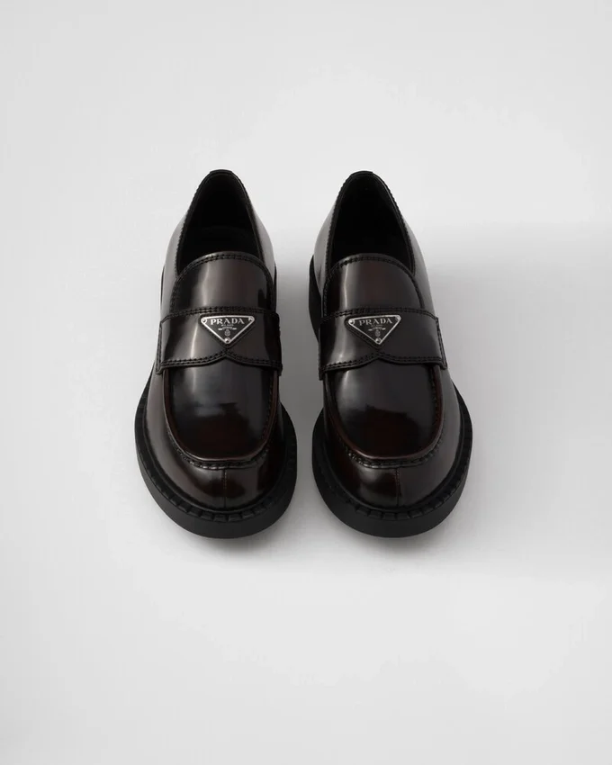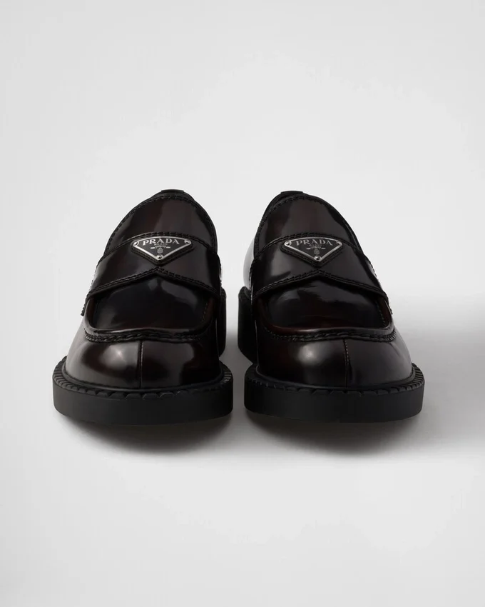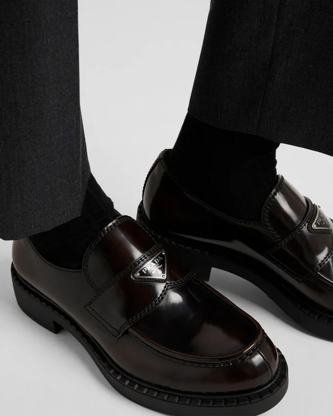 The Classic Masculine Loafer is Redesigned with New Volumes and Sophisticated Details. Made of Brushed Leather, an Iconic Material of the Brand, the Shoe is Decorated with the Triangle Logo, Stitched Edges and a Special Pattern on the Rubber Sole.