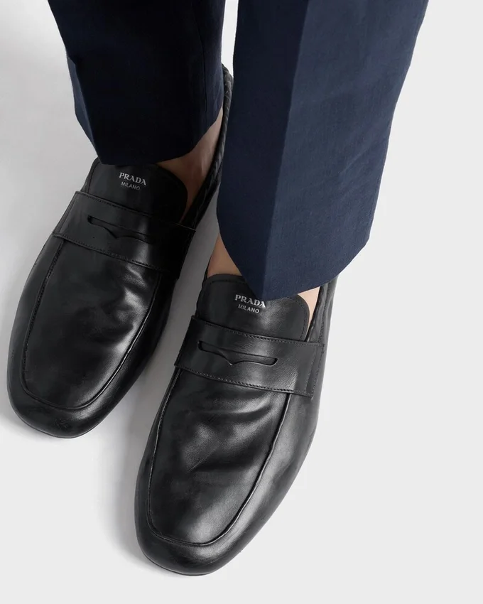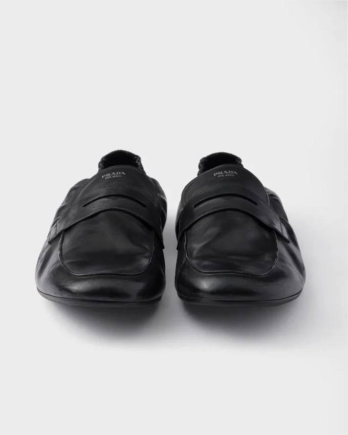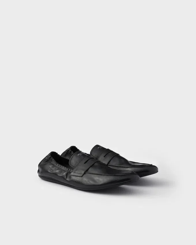 Loafers, a Classic of Formal Style, Are Reinterpreted with an Innovative and Completely Deconstructed Design. The Style Expresses an Evolution in Shoe Construction That Favors Light, Soft and Flexible Silhouettes. These Loafers Made of Antiqued Leather Have Sleek Lines and Are Decorated with the Refined Lettering Logo.