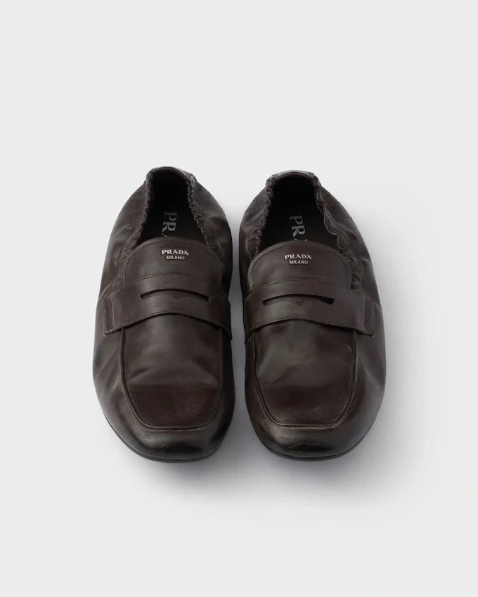 Loafers, a Classic of Formal Style, Are Reinterpreted with an Innovative and Completely Deconstructed Design. The Style Expresses an Evolution in Shoe Construction That Favors Light, Soft and Flexible Silhouettes. These Loafers Made of Antiqued Leather Have Sleek Lines and Are Decorated with the Refined Lettering Logo.