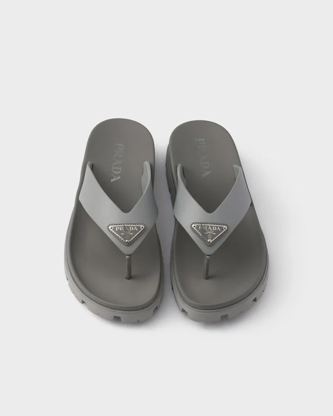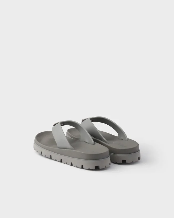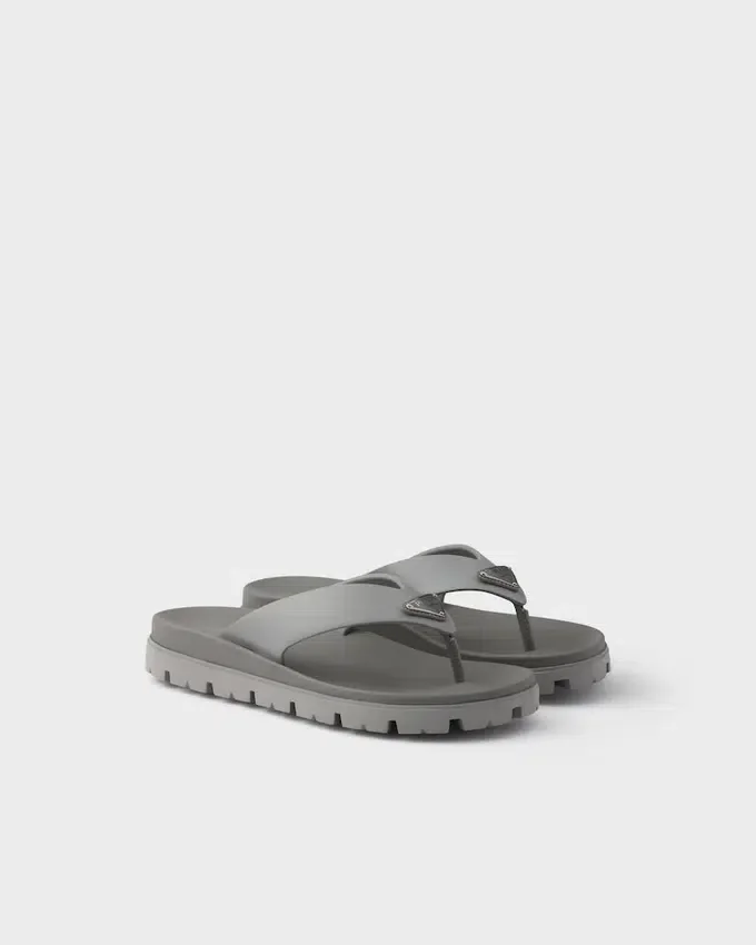 These Rubber Thong Sandals Have a Contemporary Silhouette with Sleek Details. The Style, Enriched by the Iconic Enameled Metal Triangle Logo, is Characterized by a Rubber Sole with Lug Tread That Adds a Sporty Touch.