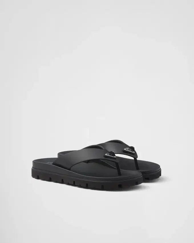 These Rubber Thong Sandals Have a Contemporary Silhouette with Sleek Details. The Style, Enriched by the Iconic Enameled Metal Triangle Logo, is Characterized by a Rubber Sole with Lug Tread That Adds a Sporty Touch.