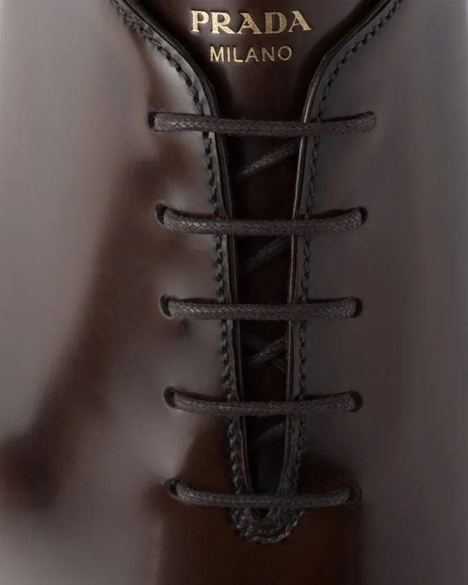 Brushed Leather, an Emblematic Material of Prada Collections, Appears in an Original Version That Gives the Shoe a Unique Shaded Finish. These Minimalist Shoes Stand out for Their Tapered Silhouette Completed with Thin Rubber Soles Supported by Insoles for Greater Comfort. The Lettering Logo Screen Printed on the Tongue Completes the Style with Contemporary Elegance.