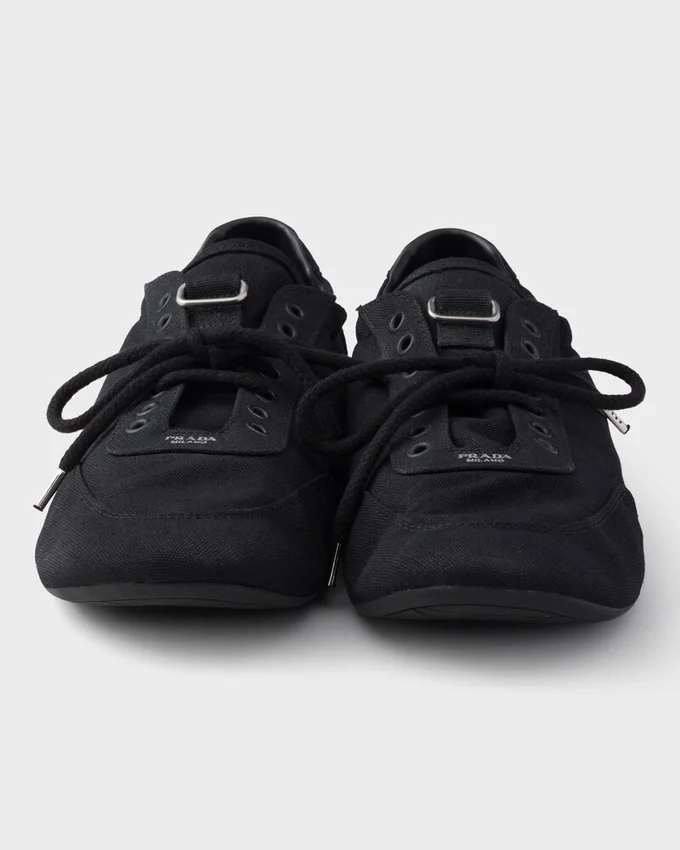 Collapse Sneakers Embody Prada’s Sporty, Artisanal Soul with a Light, Flexible and Deconstructed Design. The Shoes Are Reinterpreted in Canvas with a Vintage Finish That Emphasizes Their Casual Character and Relaxed Attitude.