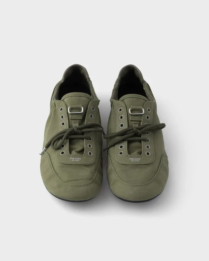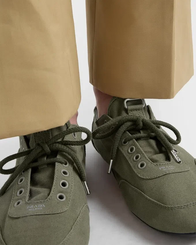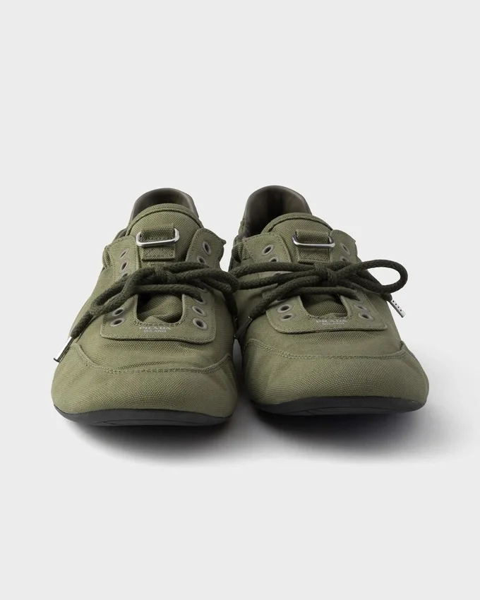 Collapse Sneakers Embody Prada’s Sporty, Artisanal Soul with a Light, Flexible and Deconstructed Design. The Shoes Are Reinterpreted in Canvas with a Vintage Finish That Emphasizes Their Casual Character and Relaxed Attitude.