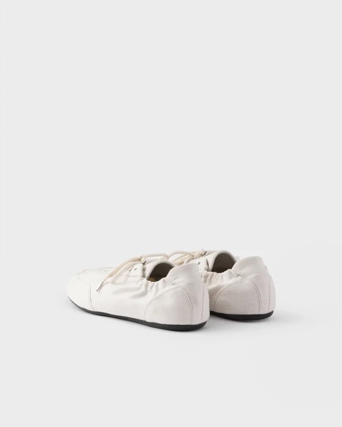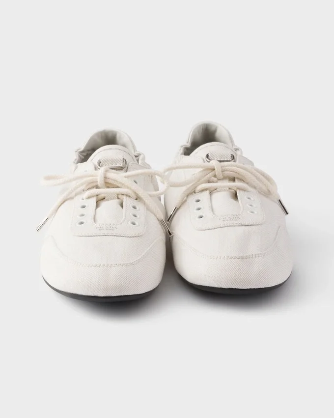 Collapse Sneakers Embody Prada’s Sporty and Artisanal Soul with a Light, Flexible and Deconstructed Design. The Shoes Are Reinterpreted in Denim with a Vintage Finish That Emphasizes Their Casual Character and Relaxed Attitude.
