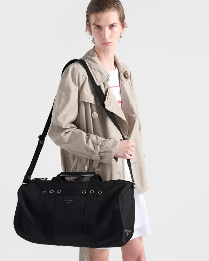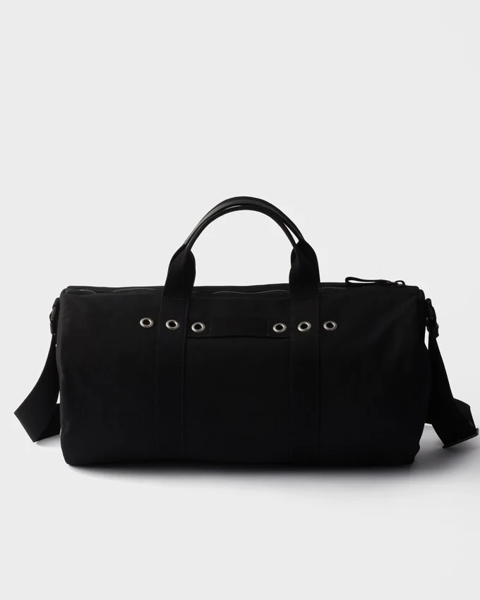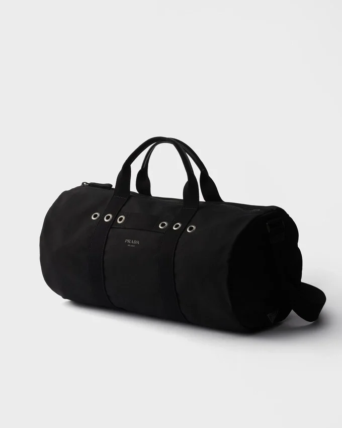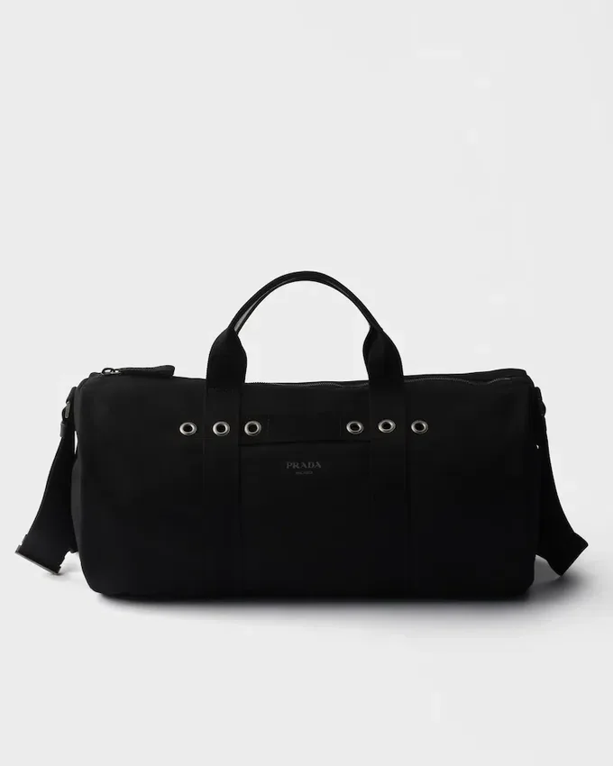 This Duffel Bag with Clean, Graphic Lines and Bold Notes Interprets Functionality as an Authentic Expression of Style. The Soft and Compact Volume Adapts to Everyday Use, While the Cotton Canvas Gives It a Sleek Yet Sporty Look. The Design is Completed by an Adjustable Shoulder Strap and Metal Hardware That Underline the Pragmatic Essence of an Accessory Designed for Contemporary Dynamism.