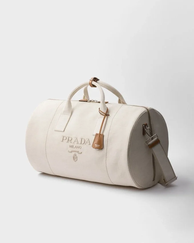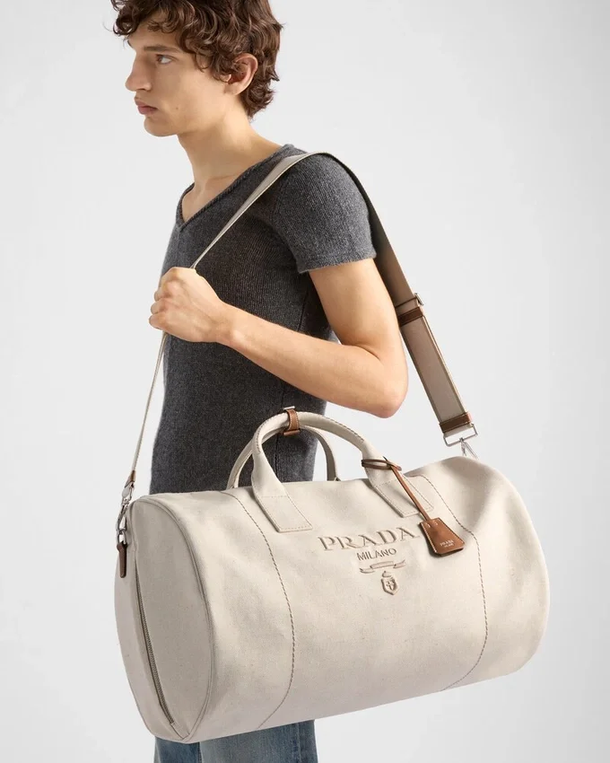This Linen Blend Duffle Bag with a Light Design and Sporty Style is Enhanced with Refined Leather Details. The Roomy, Versatile Style is Characterized by a Removable Shoulder Strap, While the Tonal Embroidered Logo Completes the Accessory with a Distinctive Note.