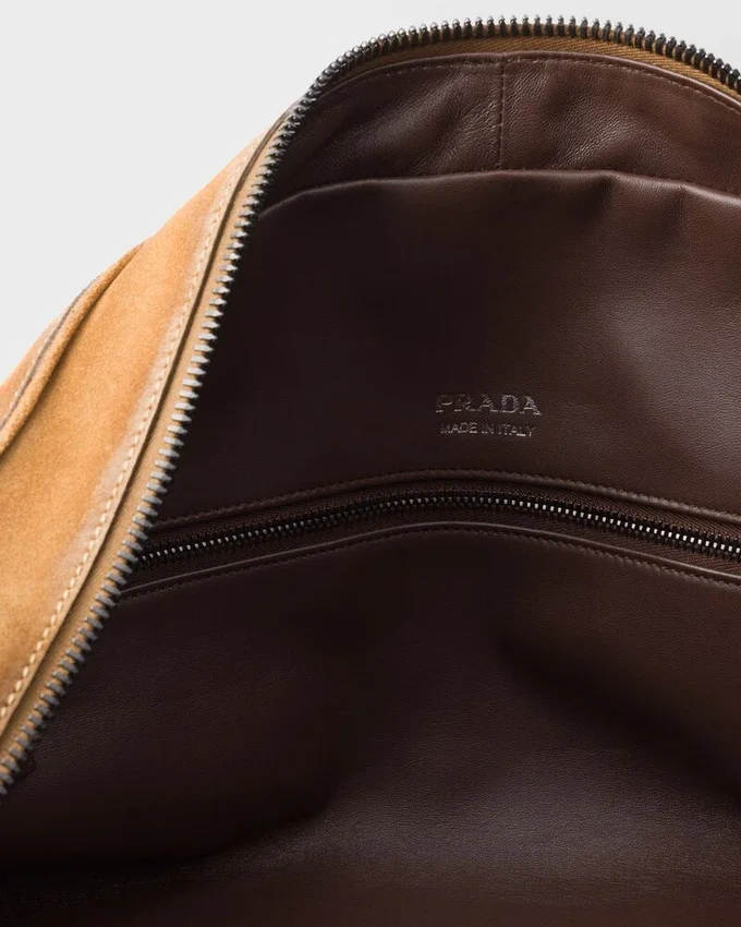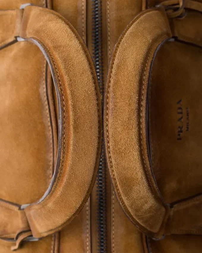 This Duffle Bag with Distinctive and Refined Details is Made of Suede with a Vintage Effect That Adds Depth and Character to the Design. The Artisan Construction Defines the Soft, Roomy Accessory Embellished with Top-Stitching and Decorated with the Lettering Logo.
