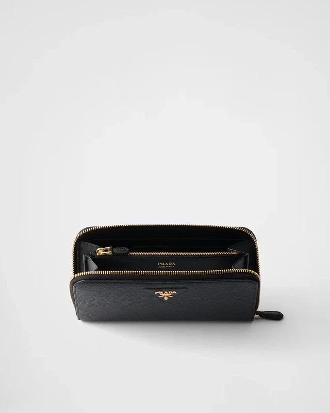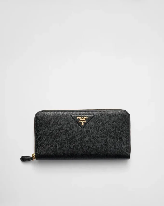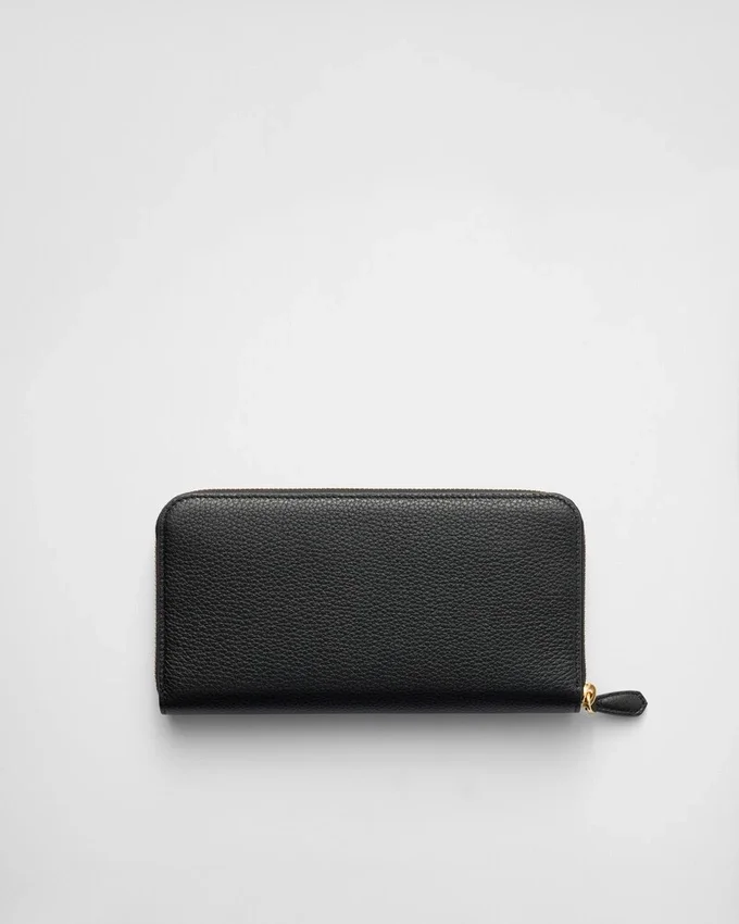This Large Leather Wallet Has Several Internal Pockets and Card Slots. The Accessory is Decorated with the Metal Lettering Logo.