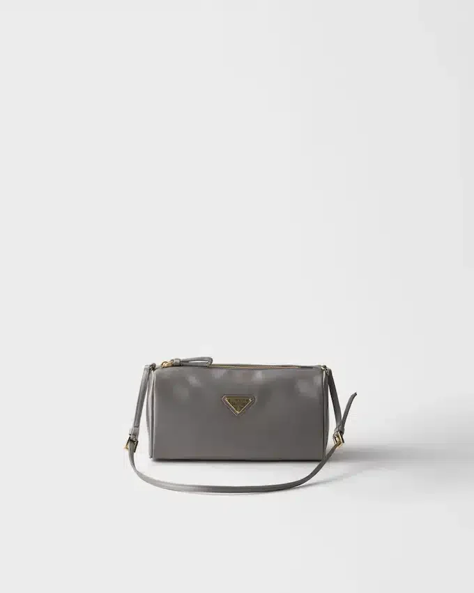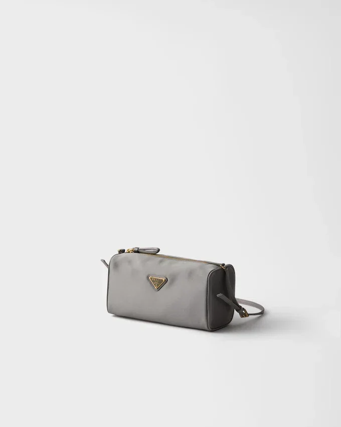 This Mini Bag with a Sleek Geometrical Shape is Enhanced by the Delicate Elegance of Satin. The Sophisticated Silhouette is Completed with Refined Details, While the Long, Narrow Handle Makes It Easy to Wear over the Shoulder.