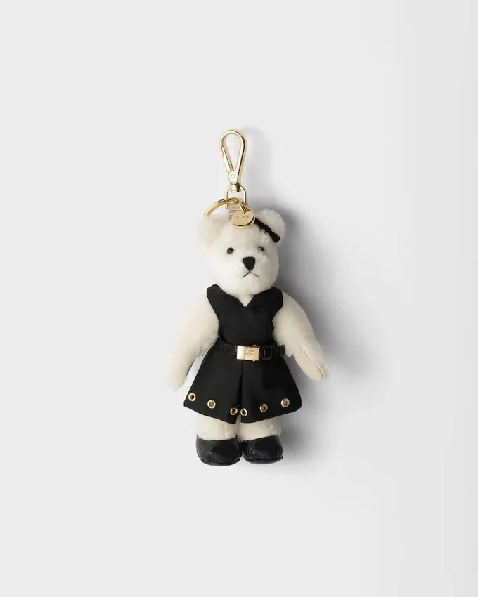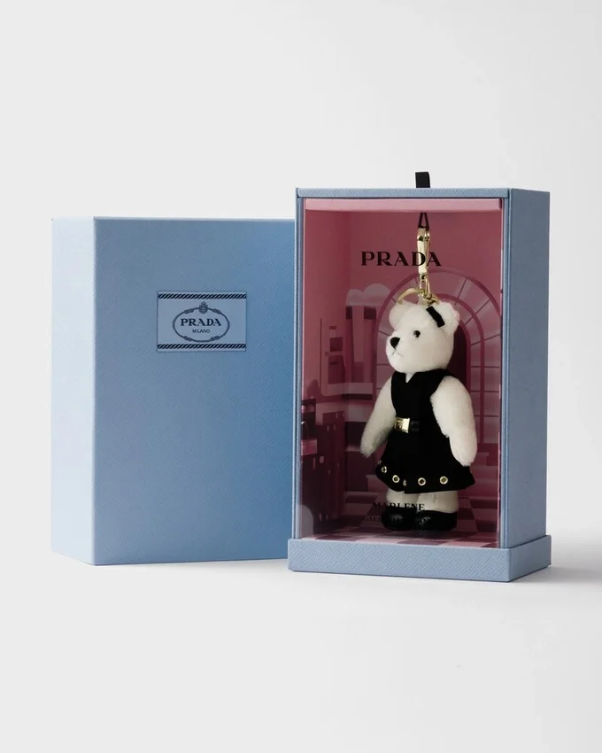 Archival Details and Emblematic Materials from Prada Collections Decorate This Playful Charm. The Accessory That Comes with a Key Ring and Snap-Hook is Ideal for Decorating Bags with a Unique, Personal Touch.