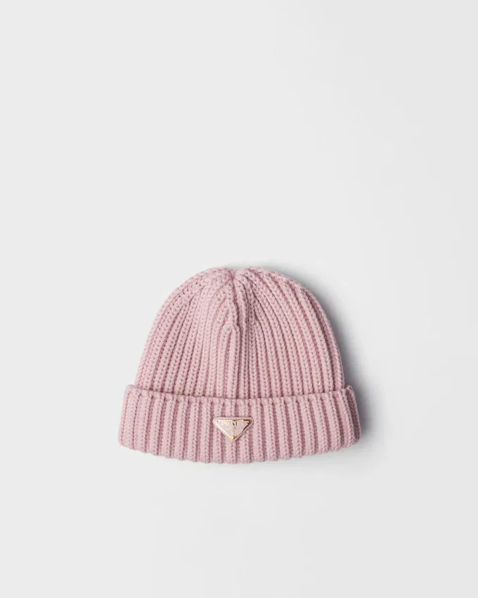 This Soft, Warm Wool Beanie is Decorated with the Emblematic Geometric Shape of the Enameled Metal Triangle Logo.