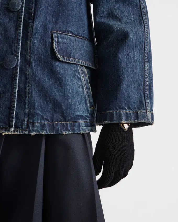 These Refined, Warm Wool Gloves Are Made with a Soft, Dense Knit. The Enameled Metal Triangle Logo Completes the Accessory with a Distinctive Note.