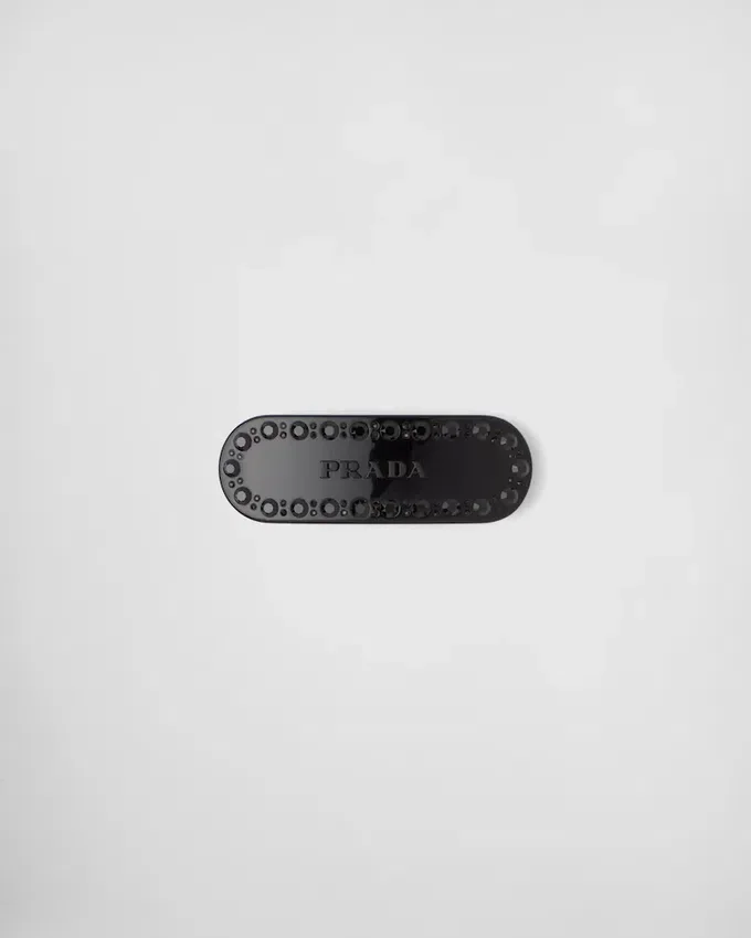 This Hair Clip is Decorated by the Prada Logo and Applied Crystals.
