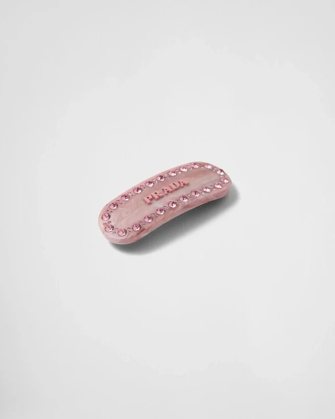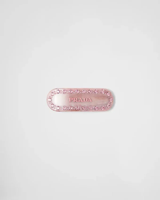 This Hair Clip is Decorated by the Prada Logo and Applied Crystals.