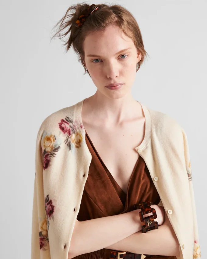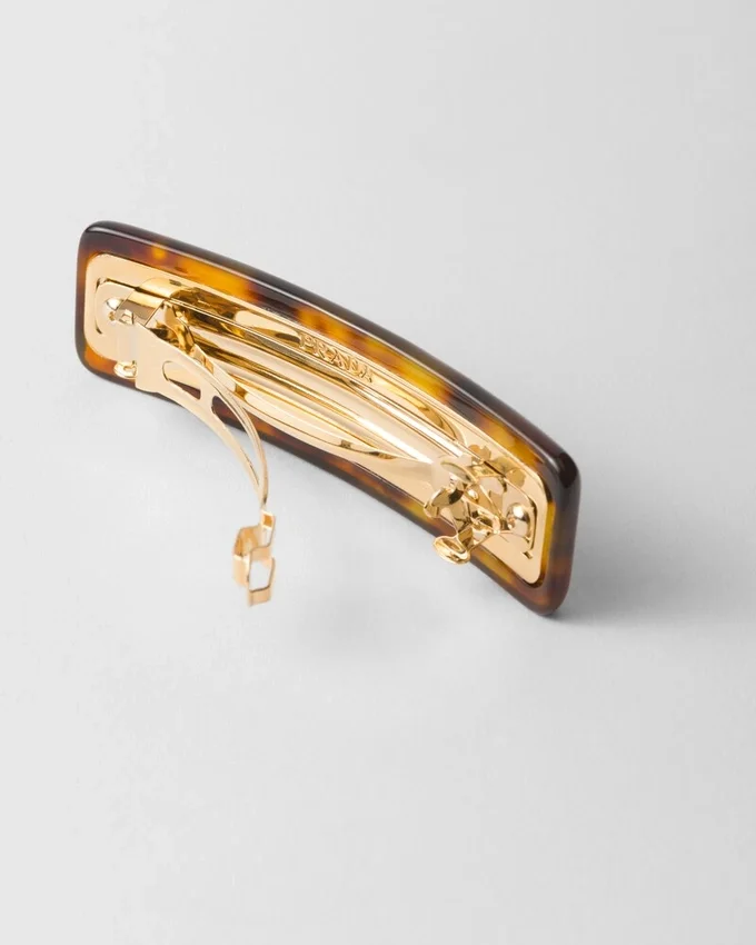 This Hair Clip with Sophisticated Allure Has a Sleek Design Animated by a Refined Tortoiseshell Motif and Embellished with the Iconic Triangle Logo.