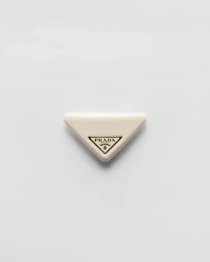 This Elegant Hair Clip with an Iconic Geometric Shape is Embellished by the Distinctive Signature of the Enameled Metal Triangle Logo.