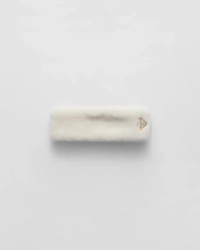 A Sporty Inspiration and Winter Moods Merge in the Design of This Shearling Headband Decorated with the Enameled Metal Triangle Logo.
