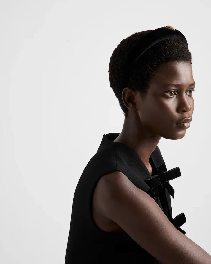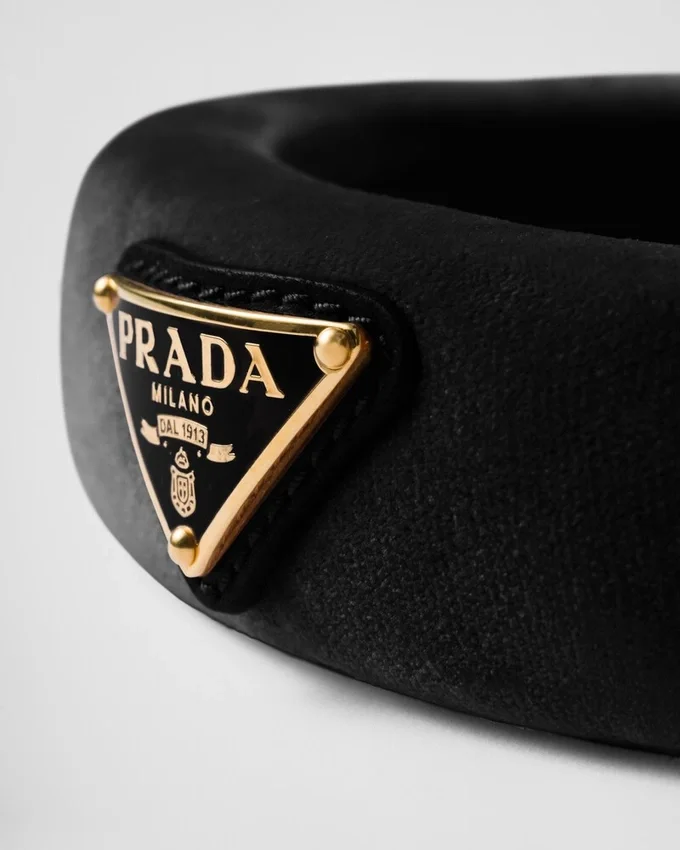 The Soft Texture of Velvet Adds an Elegant Touch to This Headband Decorated with the Triangle Logo.