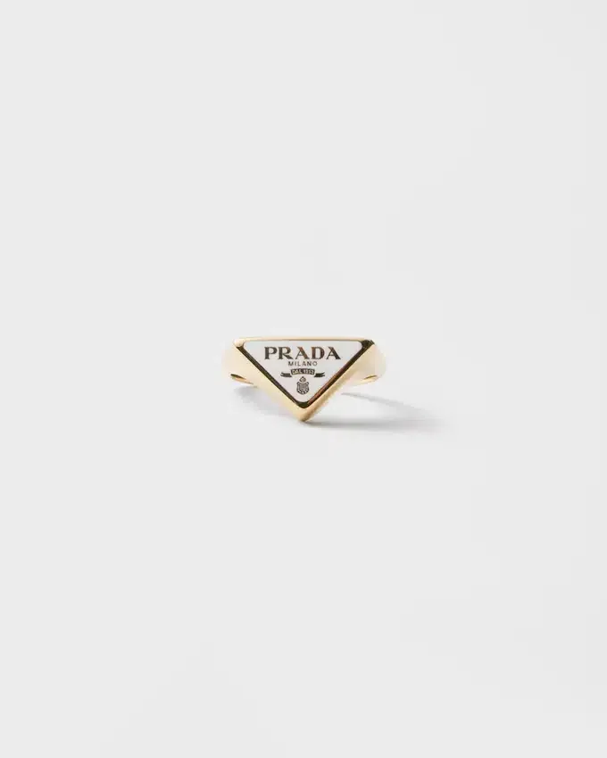 The Sleek, Iconic Shape of the Triangle Logo is the Star in the Design of This Enameled Metal Ring with Contemporary Style.