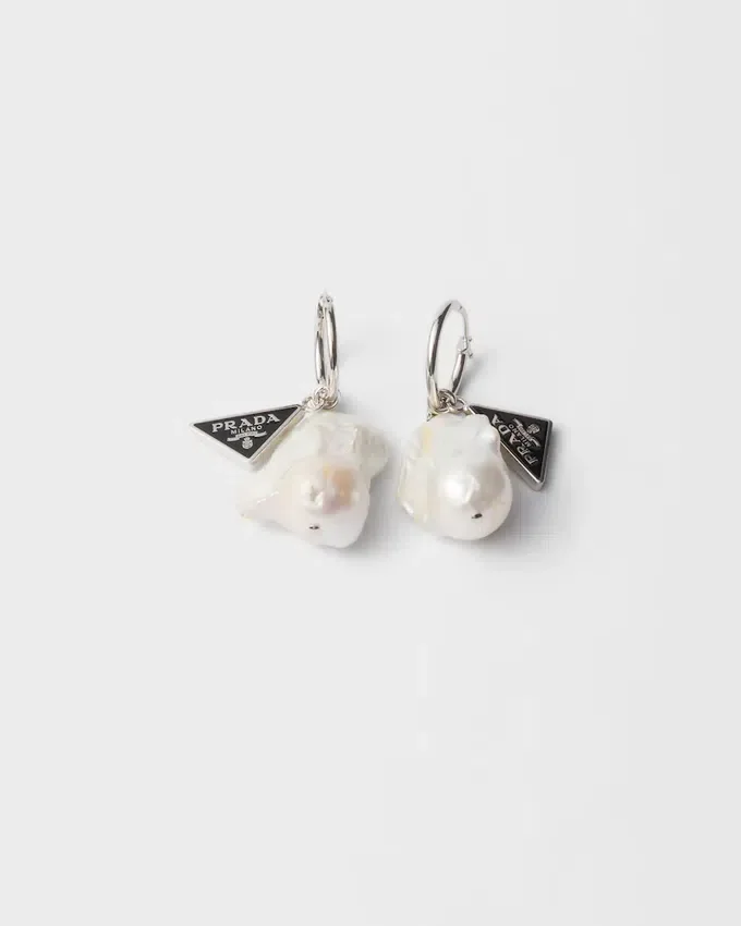 The Irregular Lines of Baroque Pearls Add an Alluring and Sophisticated Touch to These Metal Earrings Completed with the Triangle Logo.