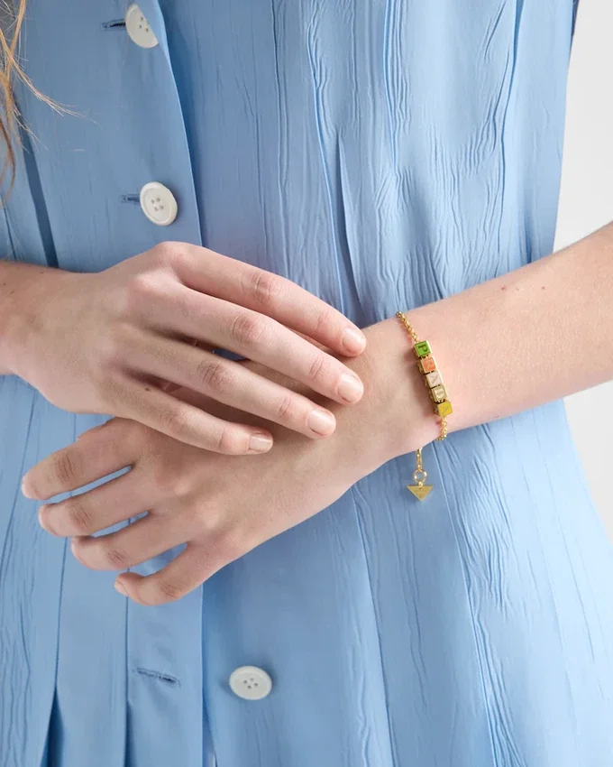 This Metal Bracelet Combines Simple Geometric Shapes in a Dynamic and Modern Design. The Accessory is Embellished with the Enameled Metal Triangle Logo.