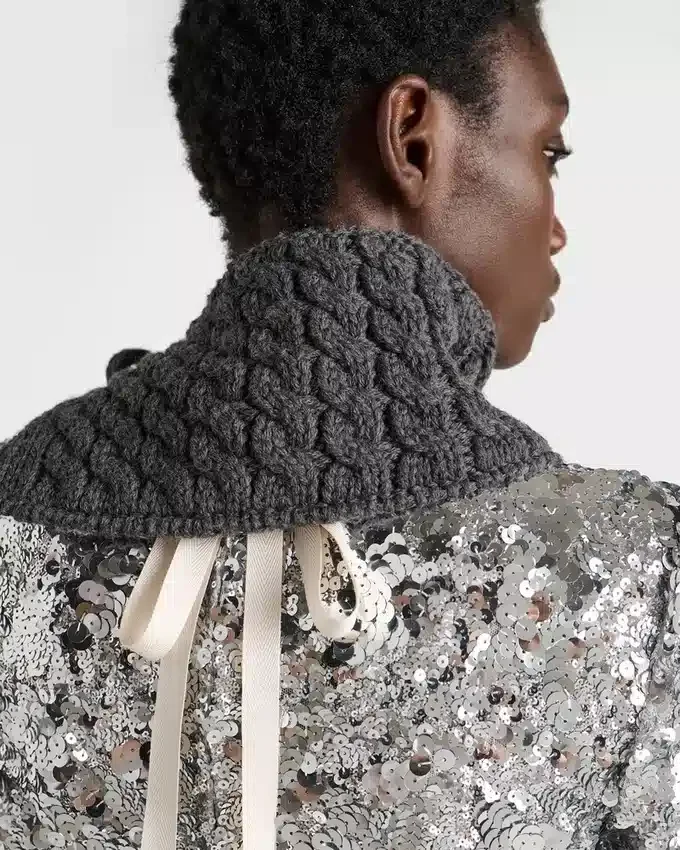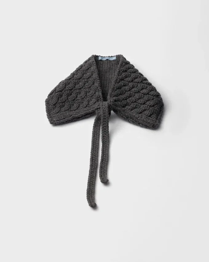 This Cable-Knit Collar Made of Wool Enhances Each Look with a Unique and Sophisticated Note. The Accessory is Decorated with the Tonal Knit Triangle Logo.