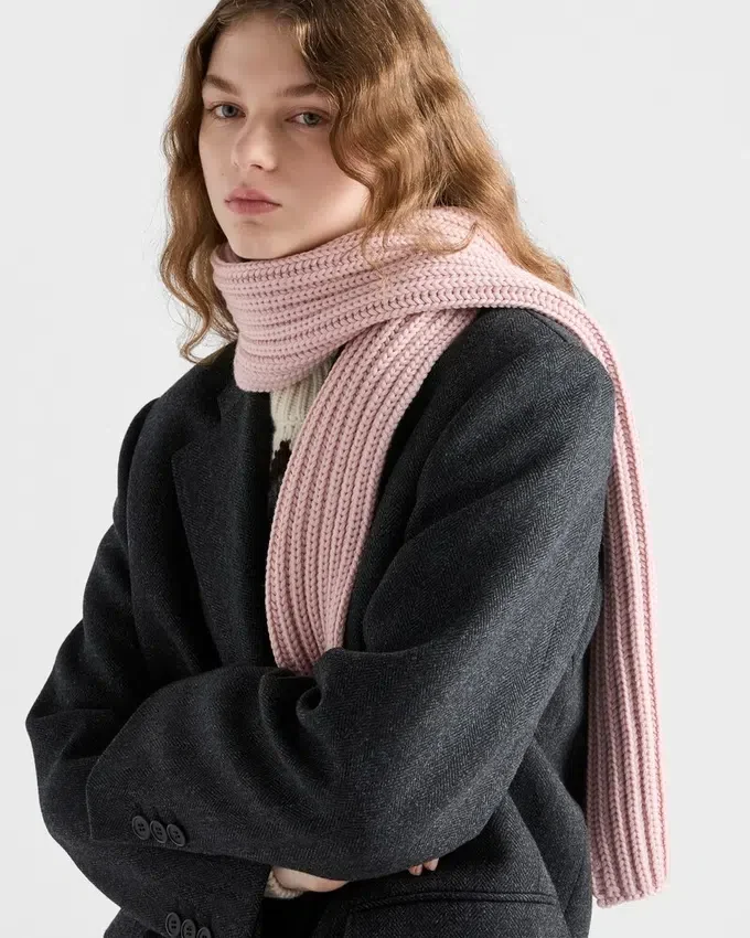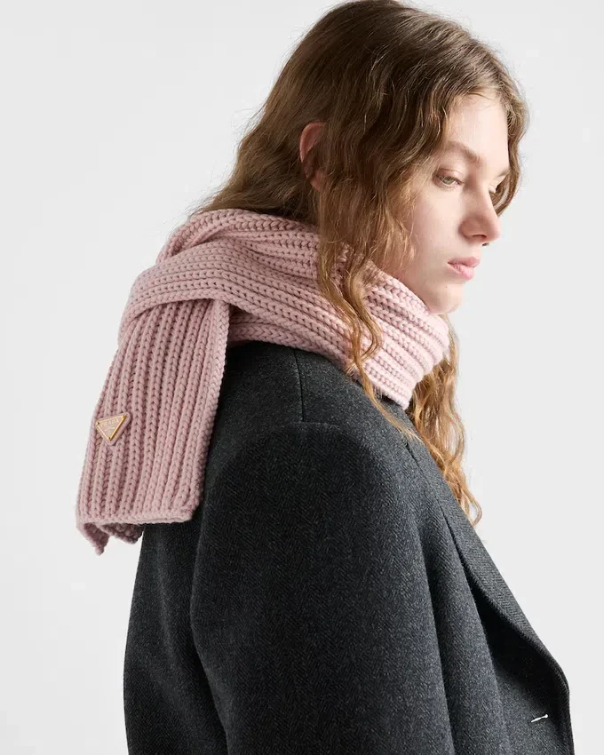 This Refined, Warm Wool Scarf is Made with a Soft, Dense Knit. The Enameled Metal Triangle Logo Completes the Accessory with a Distinctive Note.